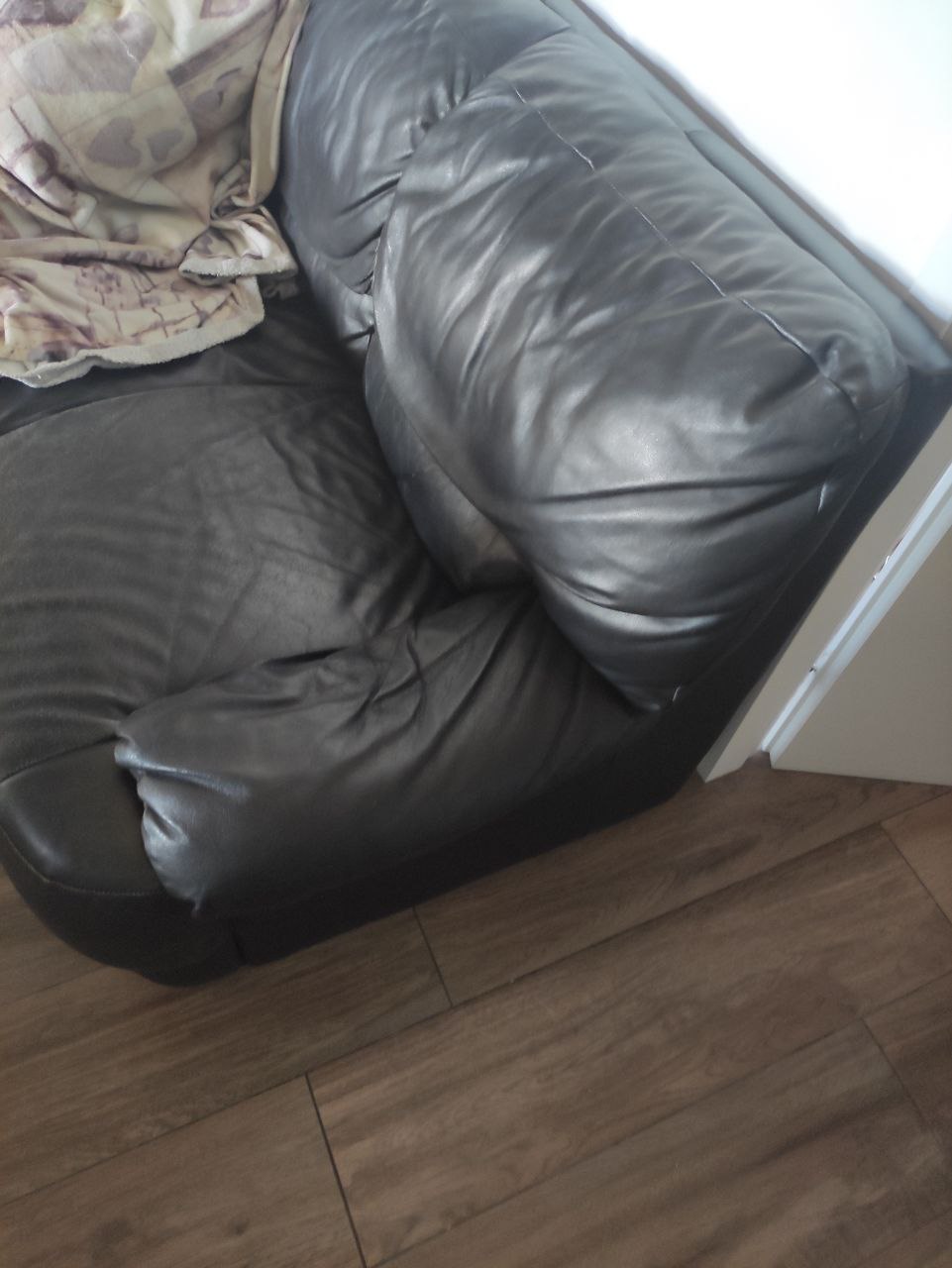 Divano similpelle di colore nero - Televisore marca SAMSUNG |