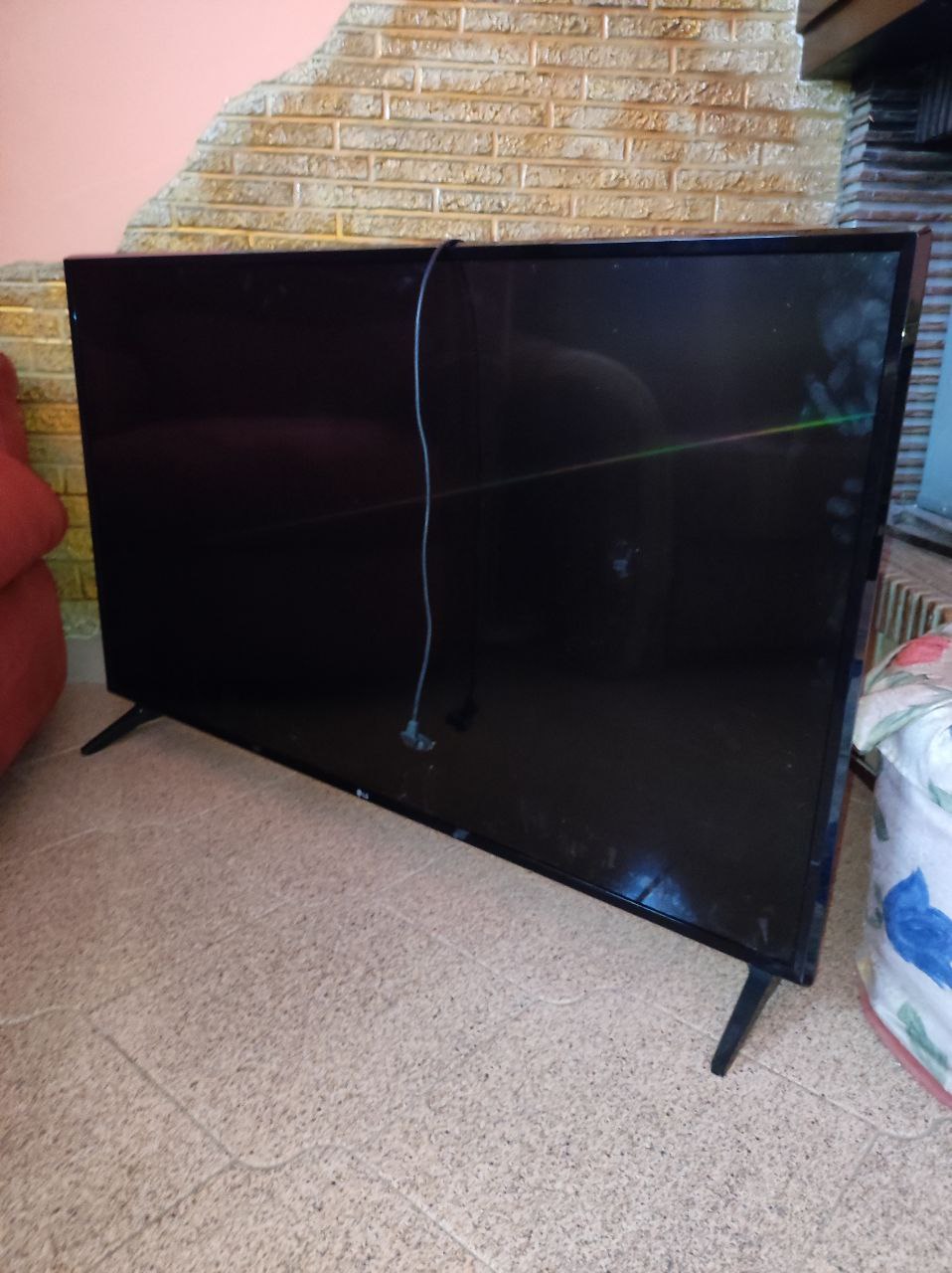 TV mod LCD marca LG, 50" circa - divano a 3 posti in tessuto multicolore - poltrona motorizzata colore bordeaux |